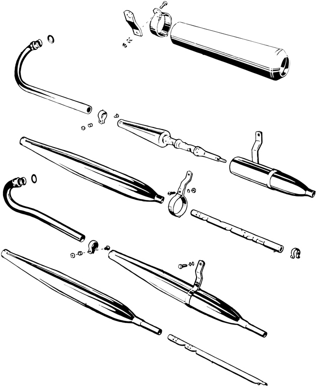 Set: exhaust silencer, clamp + screw, manifold right, clamp, union nut, manifold gasket
