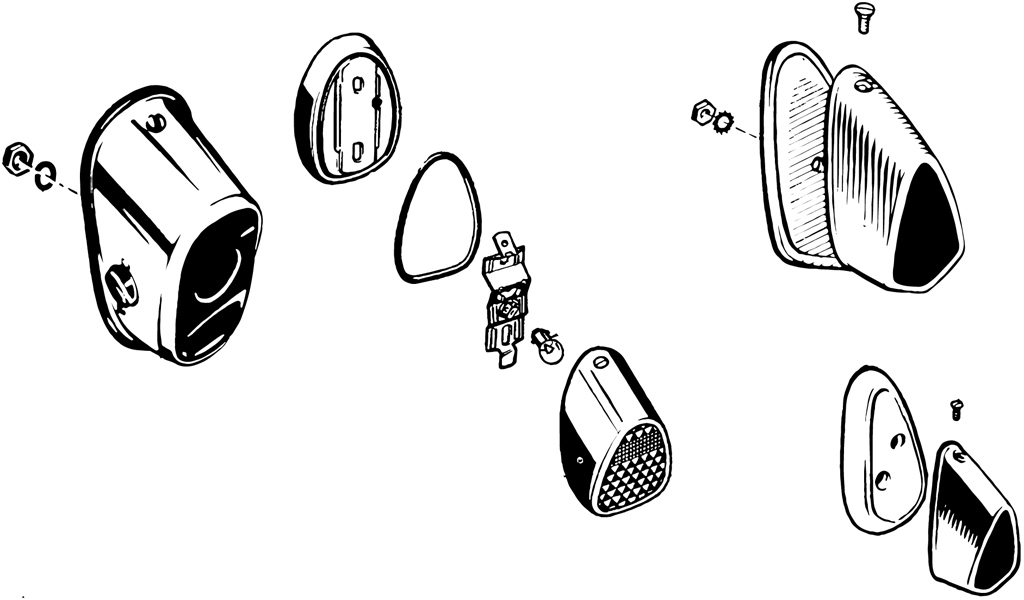 Complete rear light with rubber pad and inner part (without bulb) suitable for Quickly N, S, Cavallino - all versions - Replacement from NSU also for the oval predecessor model