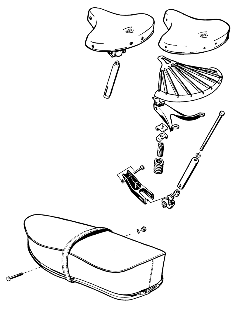 NSU saddle frame in original design, completely newThe saddle is ready to mount and only needs to be attached to the seat post! Comfortable seat - substructure with 10 springs at the top and 2 compression springs at the bottom. Suitable for all 1-seater models and versions