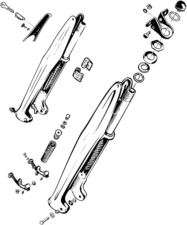 Set á 2 bolts M 7+ 4 spring washers for suspension fork 1st version.