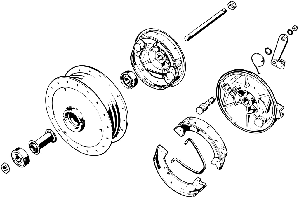 Stainless steel nut with galvanised spring washer for fastening the brake lever to the brake key (wheel hub)